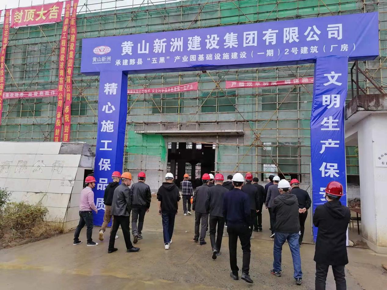 2021年11月5日上午,黟縣縣委書記葉建明一行人蒞臨公司承建的黟縣“五黑”產(chǎn)業(yè)園基礎(chǔ)設(shè)施建設(shè)(一期)2號建筑(廠房)施工現(xiàn)場進(jìn)行檢查調(diào)研。