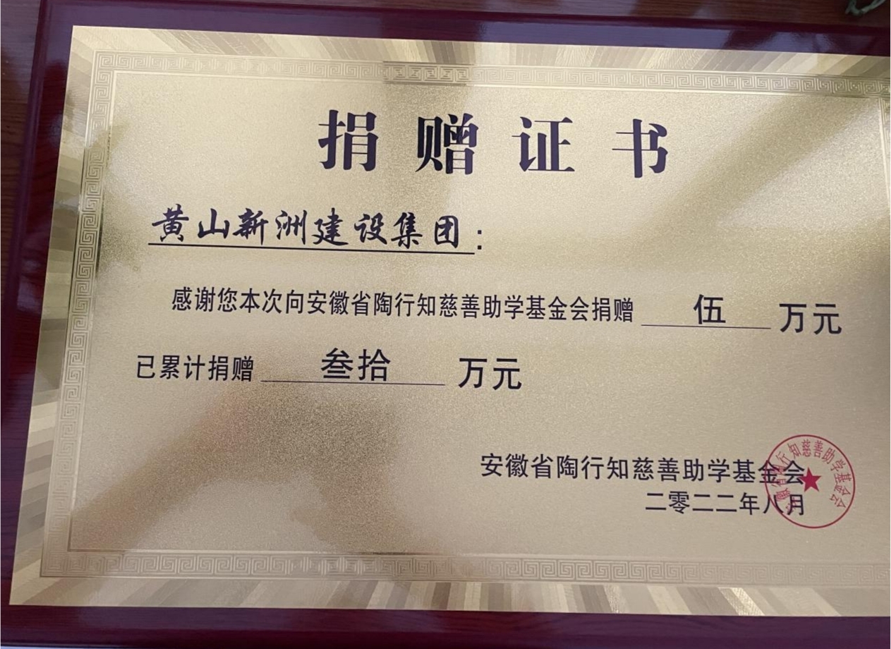 黃山新洲建設(shè)集團(tuán)有限公司董事長李文武作為基金會發(fā)起人之一,多年來一直“助學(xué)圓夢·情暖學(xué)子”,公司資助貧困大學(xué)生是緊緊圍繞政府工作中心、服務(wù)大局,讓更多大學(xué)生能夠圓夢大學(xué),使貧困學(xué)子能在逆境中追逐人生夢想。公司已累計向貧困學(xué)生捐款達(dá)30萬元。