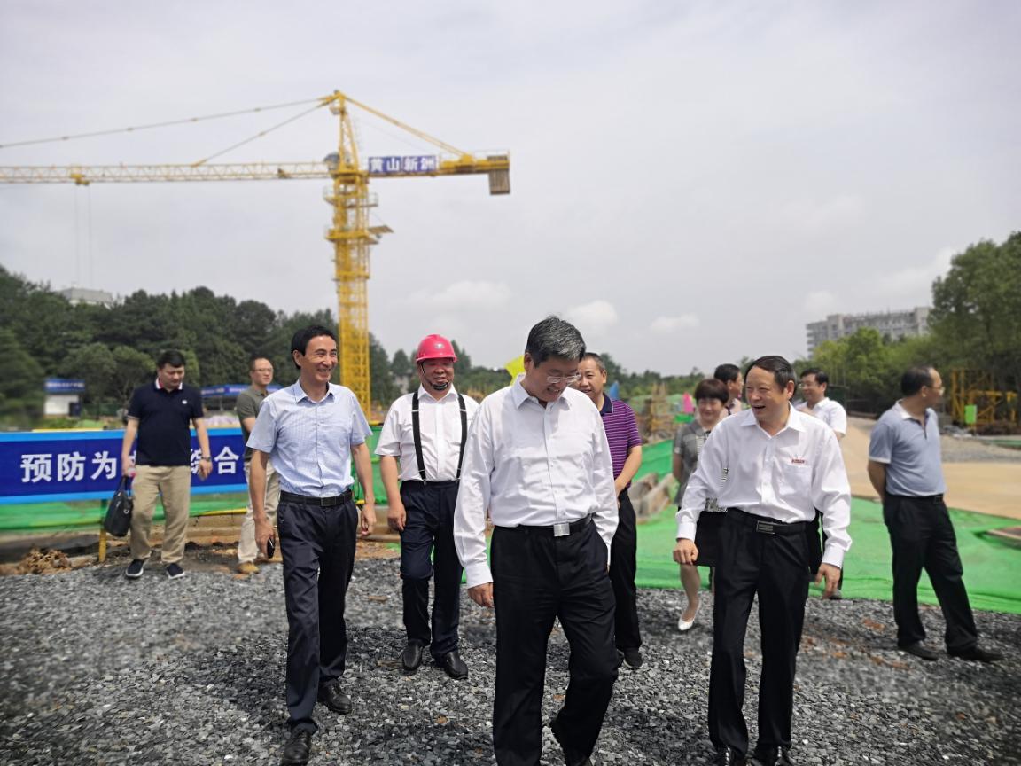 7月2日上午,黃山市市長(zhǎng)孫勇、副市長(zhǎng)程紅一行來(lái)我公司承建的黃山學(xué)院實(shí)習(xí)實(shí)訓(xùn)中心項(xiàng)目調(diào)研。校黨委書(shū)記汪楓,黨委副書(shū)記、校長(zhǎng)李鐵范,校黨委委員、副校長(zhǎng)張德學(xué)、集團(tuán)公司董事長(zhǎng)李文武等陪同參加并對(duì)項(xiàng)目的總體情況作了簡(jiǎn)要匯報(bào)。
