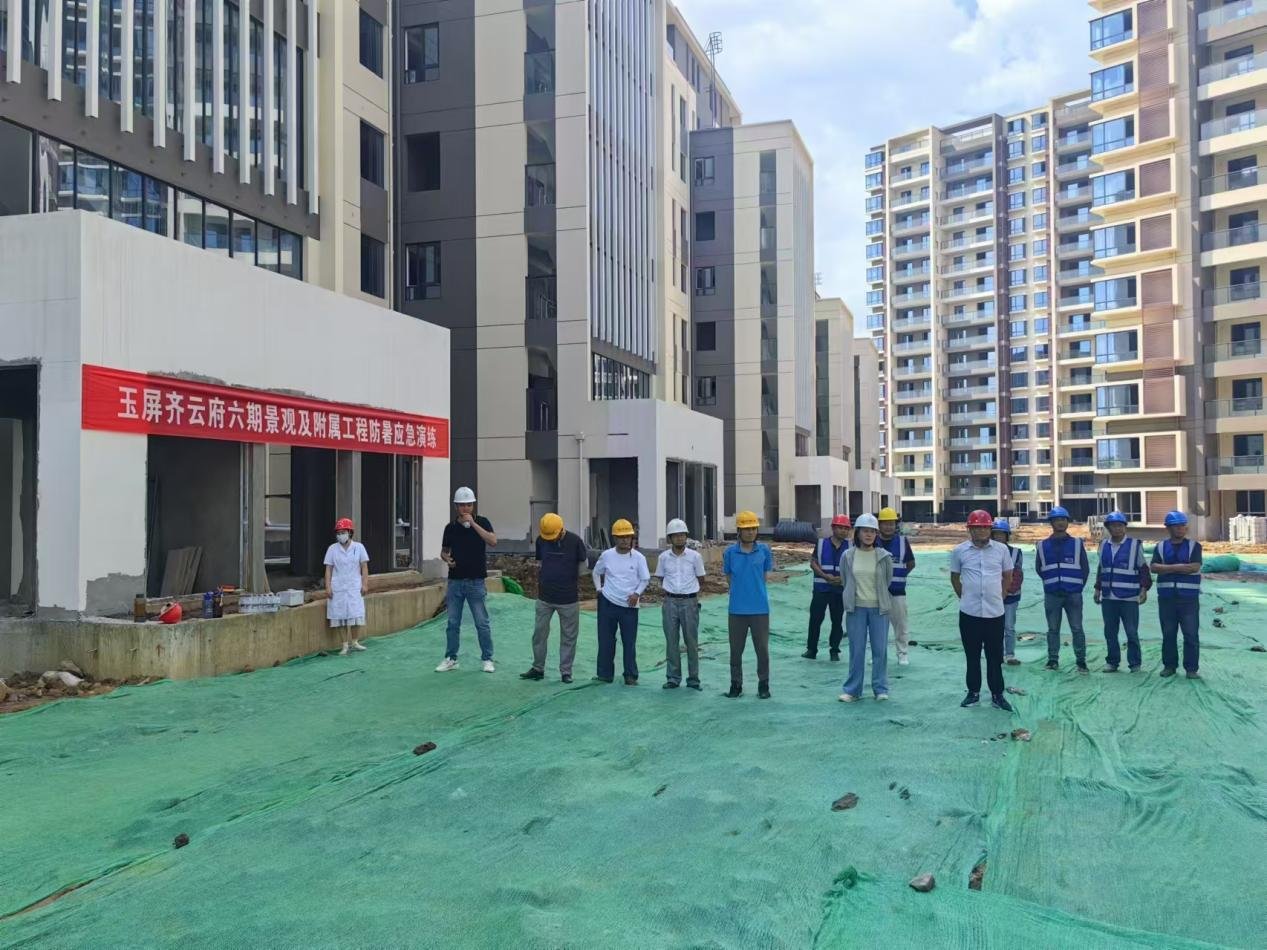2024年8月15日,隨著炎炎夏日的持續(xù),我公司承建的玉屏齊云府六期景觀及附屬工程項(xiàng)目上由黨支部、工會(huì)、工程技術(shù)部聯(lián)合成功舉行了一場高溫防中暑應(yīng)急演練。此次演練旨在提高項(xiàng)目團(tuán)隊(duì)在高溫環(huán)境下的應(yīng)急處理能力,確保施工作業(yè)人員