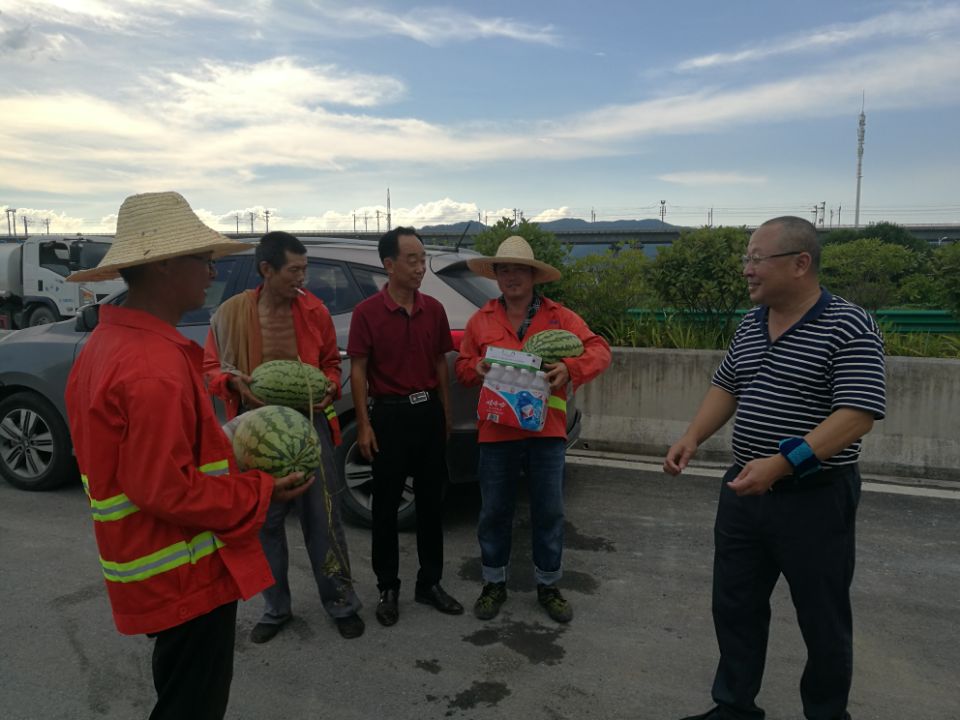 黨支部書(shū)記李惠明現(xiàn)場(chǎng)發(fā)放防暑降溫用品,表示慰問(wèn)