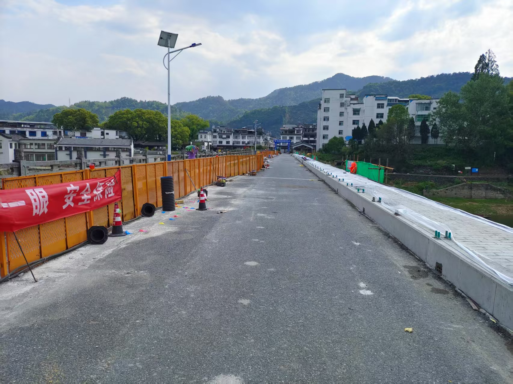 深渡橋位于歙縣S348街王路上,橋梁為11跨30米鋼筋混凝土雙曲拱橋,橋梁全寬10米,全長390米。本次實施對老橋進行維修加固處理,主要施工內(nèi)容包含全橋混凝土裂縫、缺損、漏筋修復(fù);腹拱圈增設(shè)型鋼襯拱加固;拆除重建橋面系及人行道;全橋進行耐久性防護:橋梁兩側(cè)接線修復(fù)等。